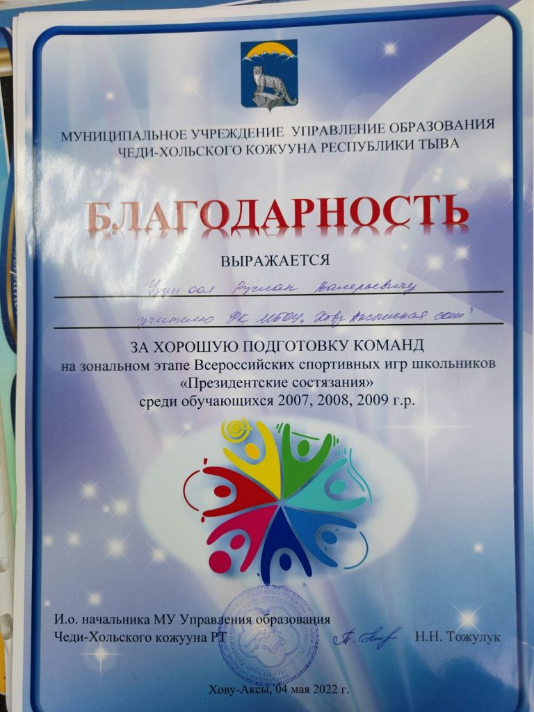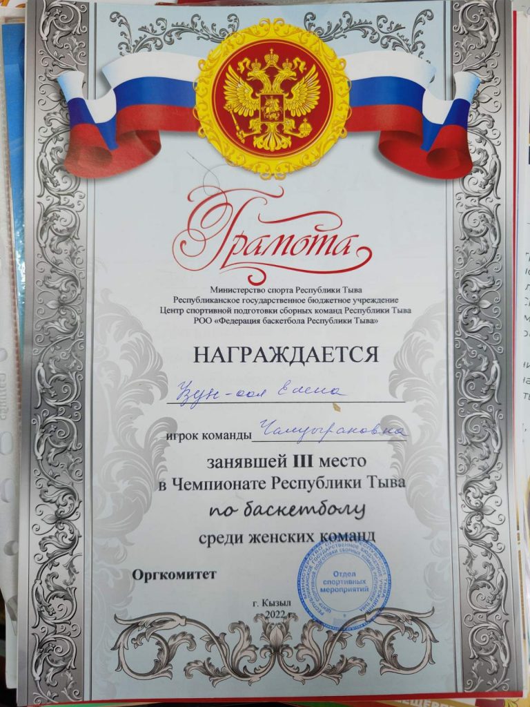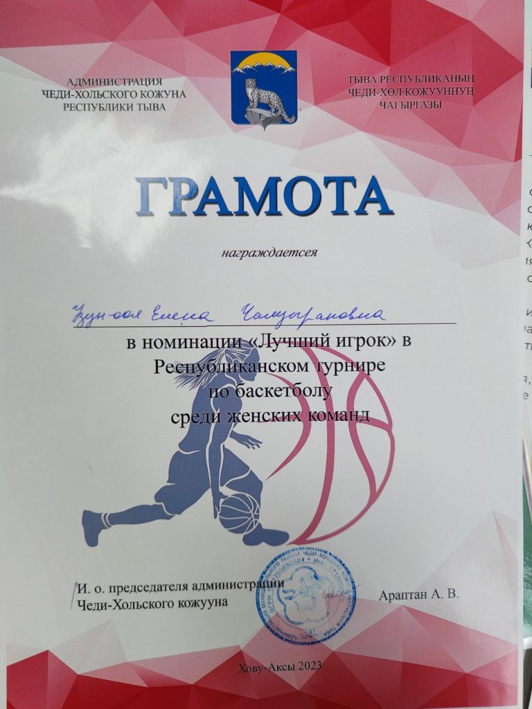 - Всероссийские соревнования «Оранжевый мяч» Республики Тыва